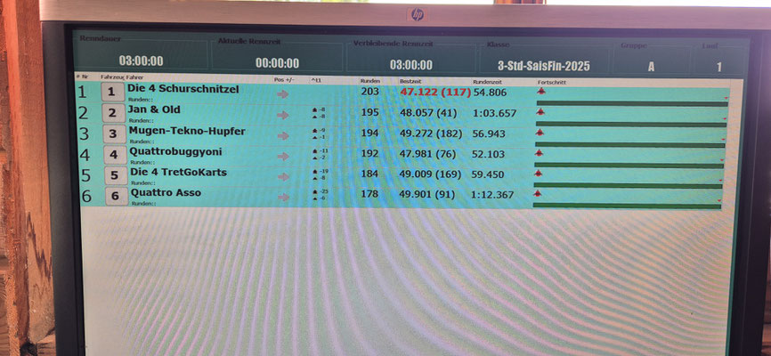 Die beste Performance an diesem Tag haben die "4 Schurschnitzel" geliefert und einen souveränen Start-Ziel-Sieg hingelegt. Auf Platz zwei ist das Team "Jan & Old" gelandet, knapp dahinter und
